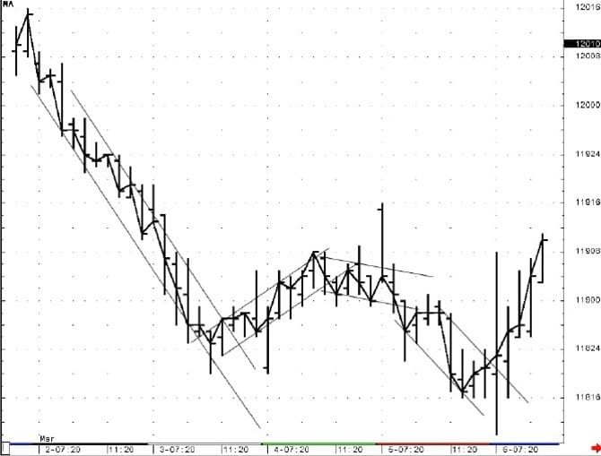 A market does not move in a straight line; instead, its movement travels across the chart in peaks and valleys, forming a channel in the direction of the trend. Early identification of the channels can give you important information, including that the trend has changed direction, what the profit objectives are and risk points.