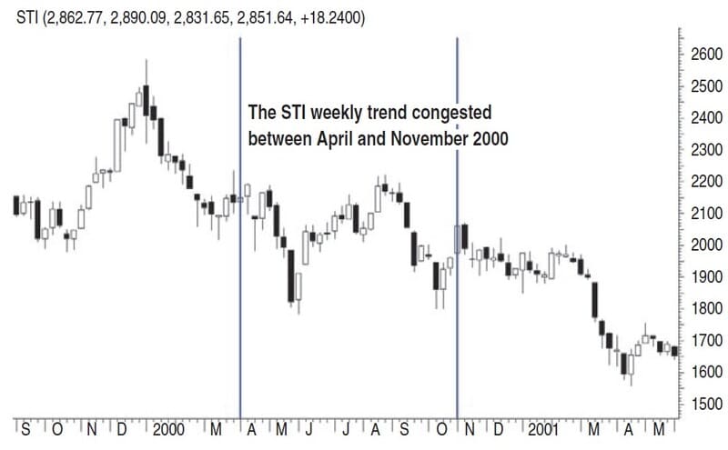 - FIGURE 7: CONGESTIONS. On this weekly chart, it is evident that the market was trading sideways between April and November 2000.